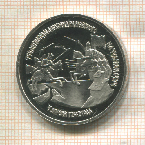 3 рубля. 750 лет победы Александра Невского на Чудском озере. ПРУФ 1992г