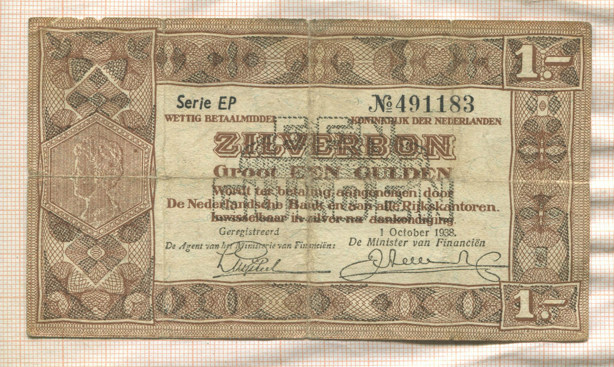1 гульден. Нидерланды 1938г