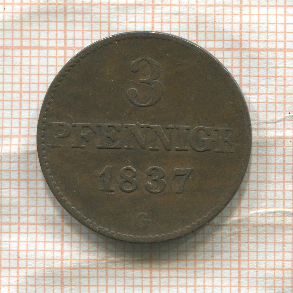 3 пфеннига. Саксония 1837г