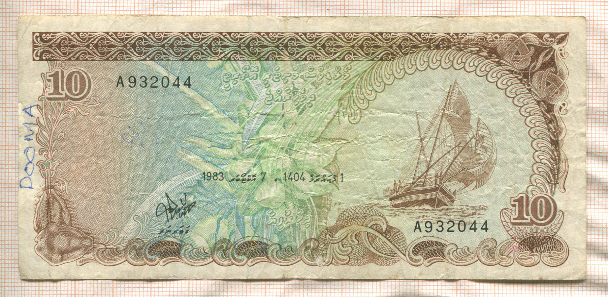 10 руфий. Мальдивы 1983г