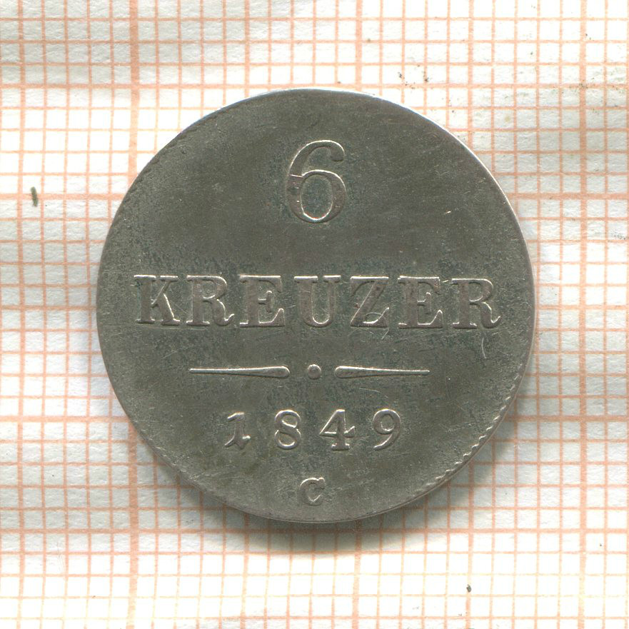 6 крейцеров. Австрия 1849г