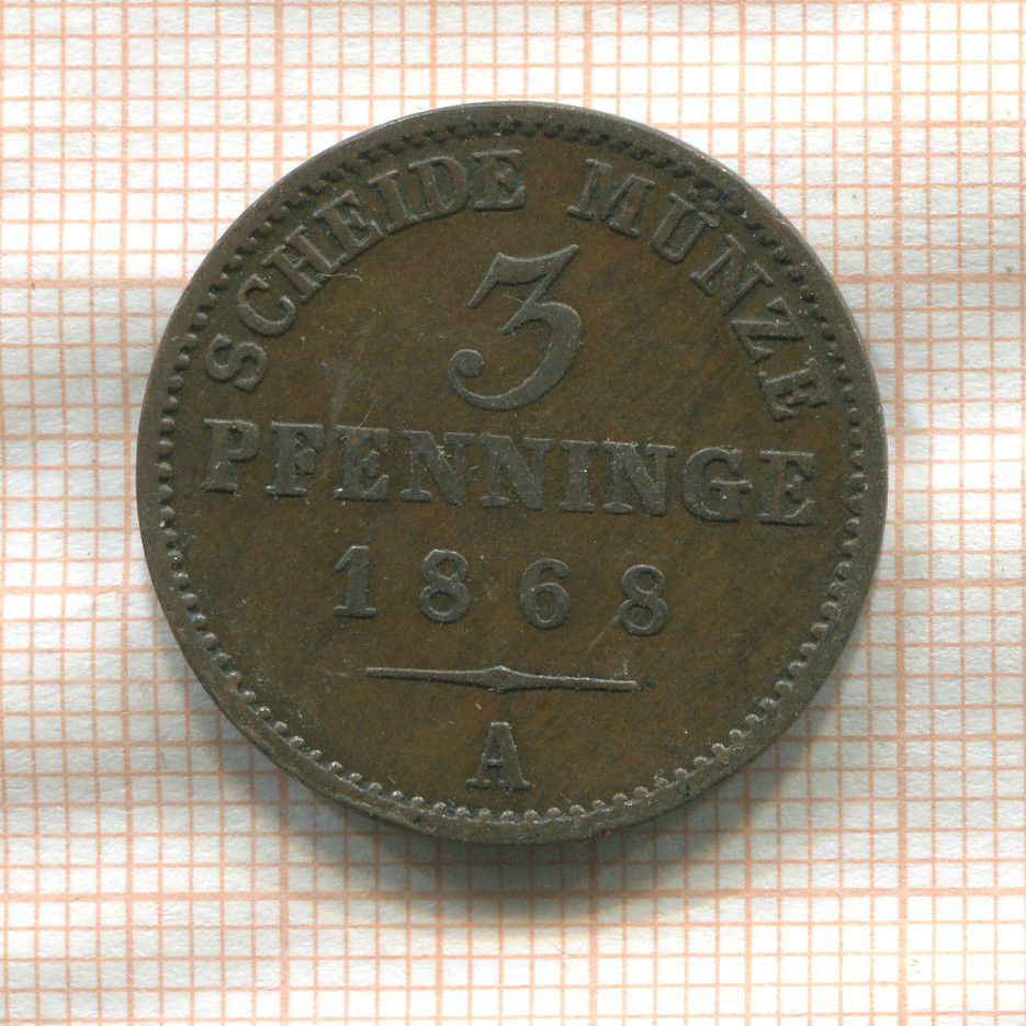 3 пфеннинга. Пруссия 1868г