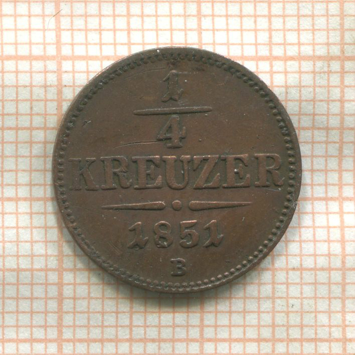 1/4 крейцера. Австрия 1851г