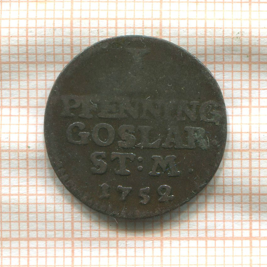 1 пфеннинг. Гослар 1752г