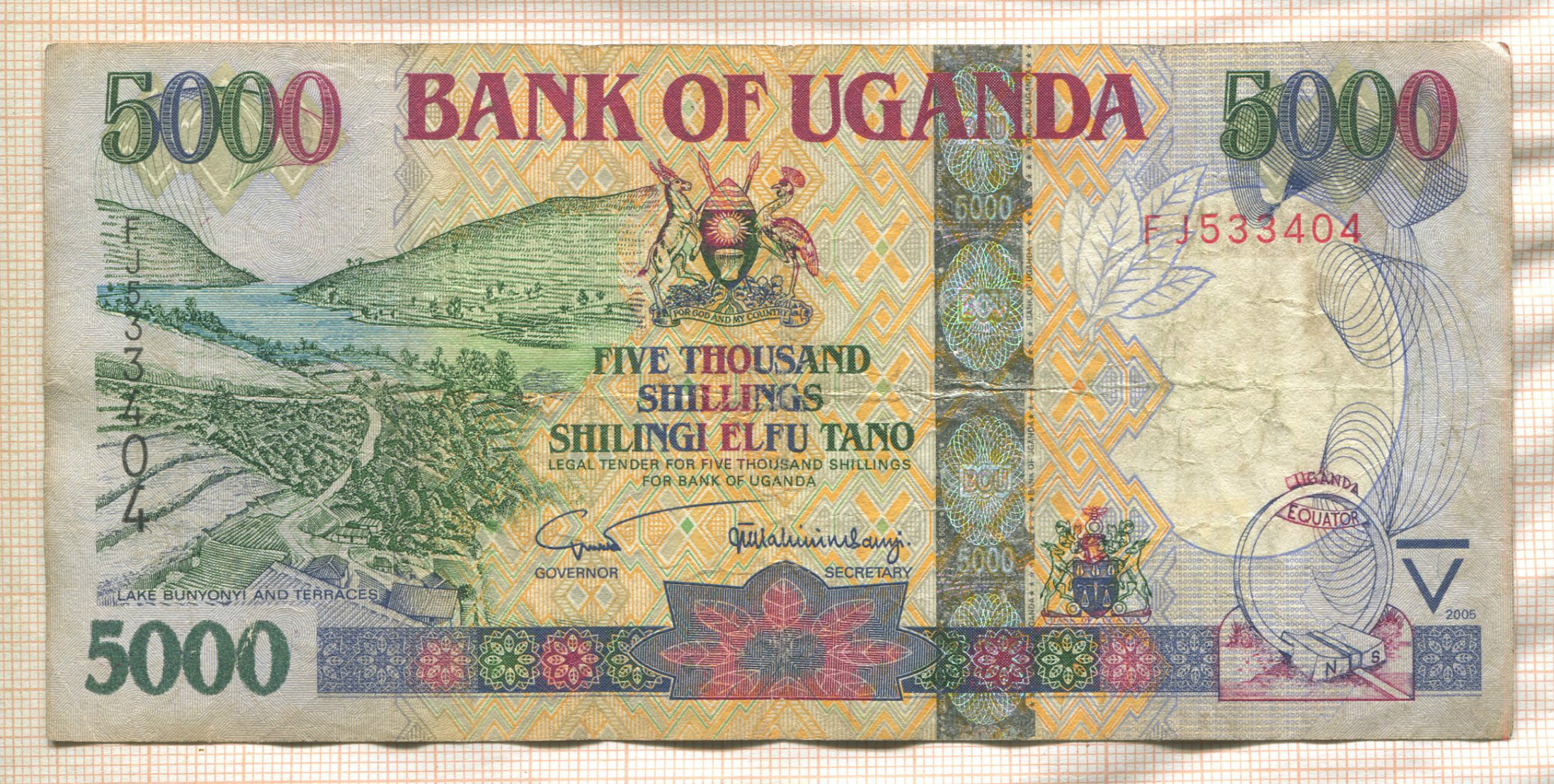 5000 шиллингов. Уганда 2005г