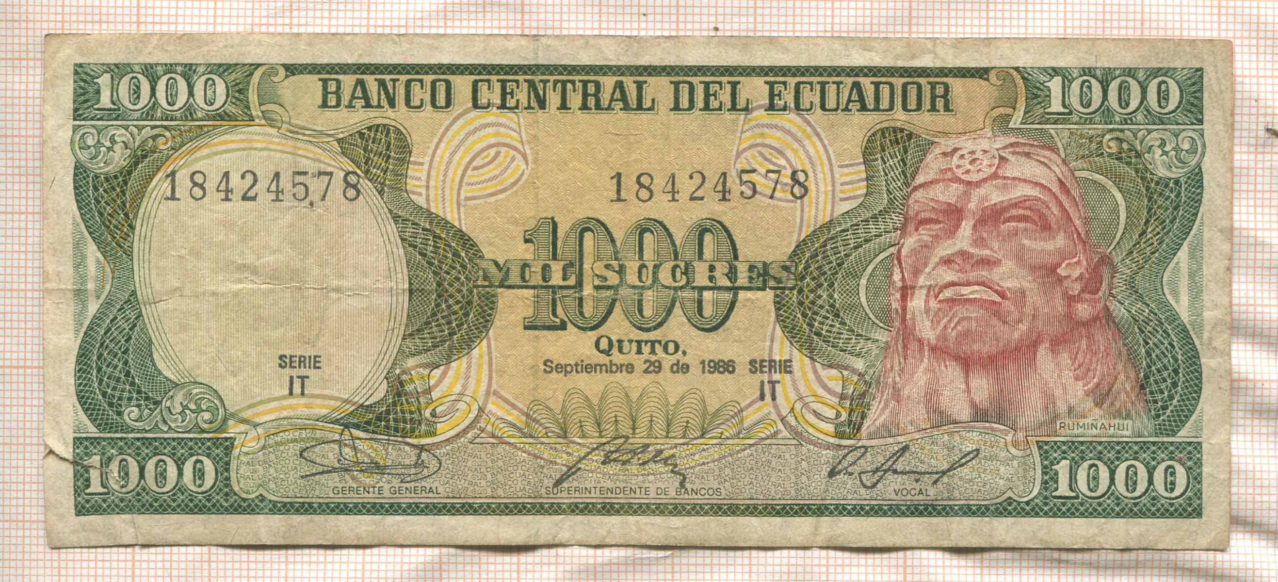 1000 сукре. Эквадор 1986г