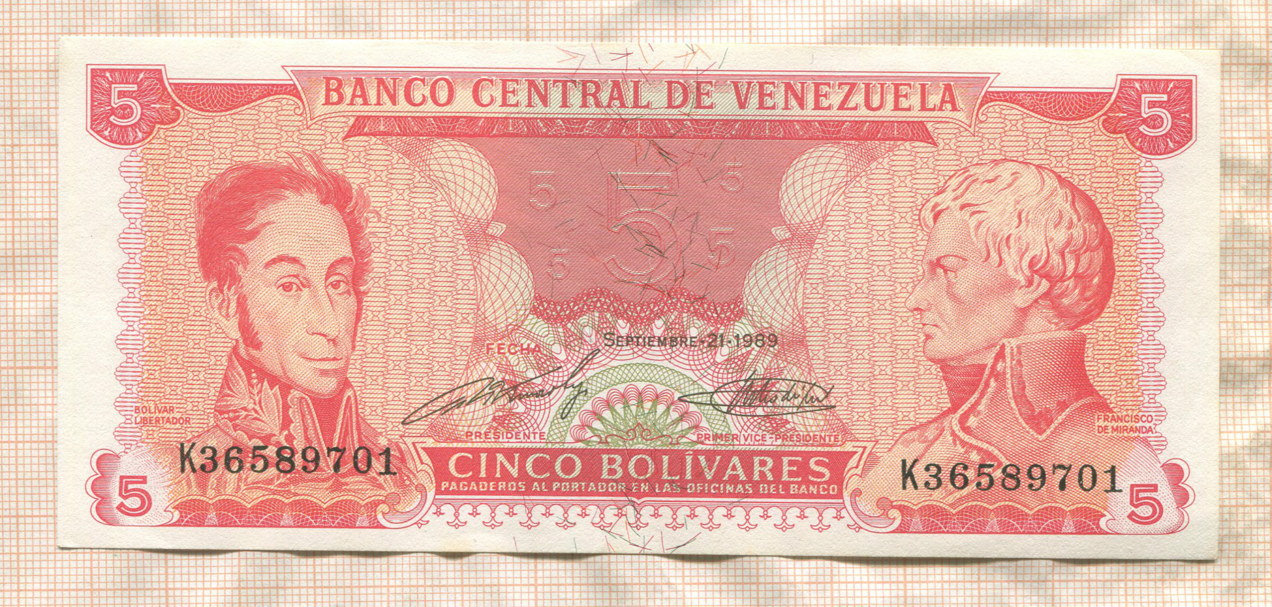 5 боливаров. Венесуэла 1989г