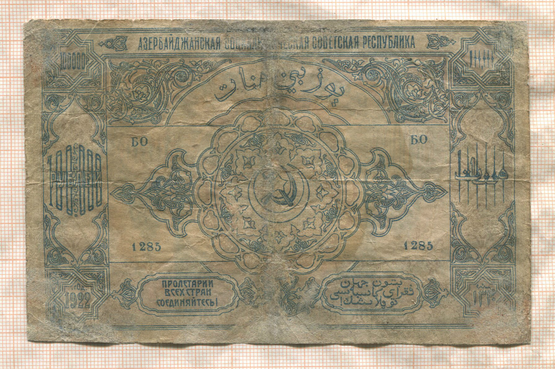 100000 рублей. Азербайджанская Советская Социалистическая Республика (реставрация) 1922г
