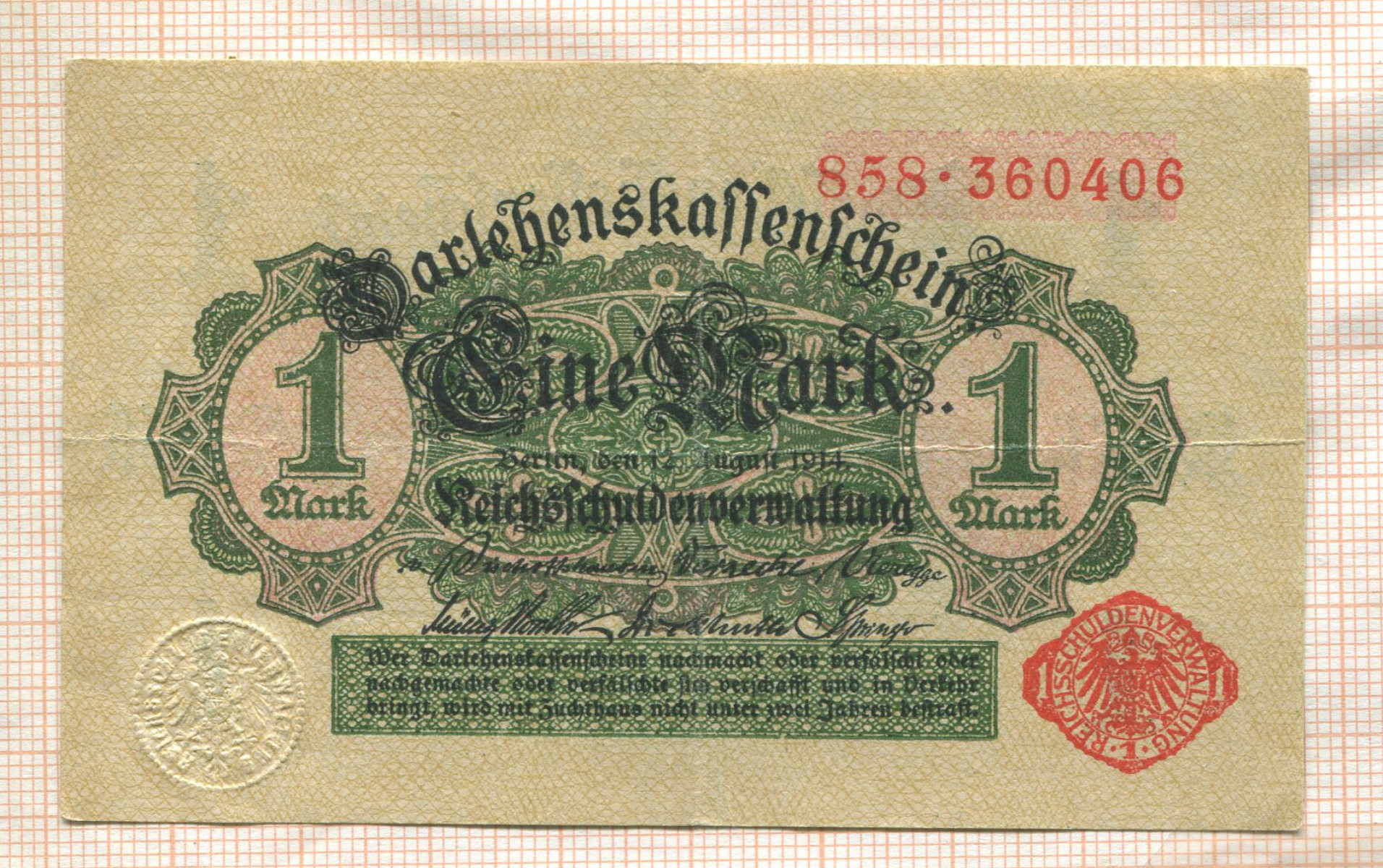 1 марка. Германия 1914г
