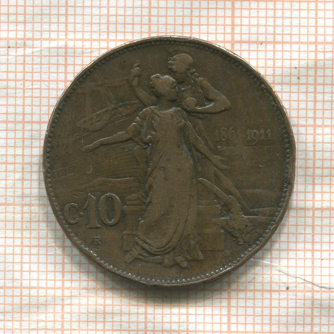 10 сентесимо. Италия (деформация) 1911г