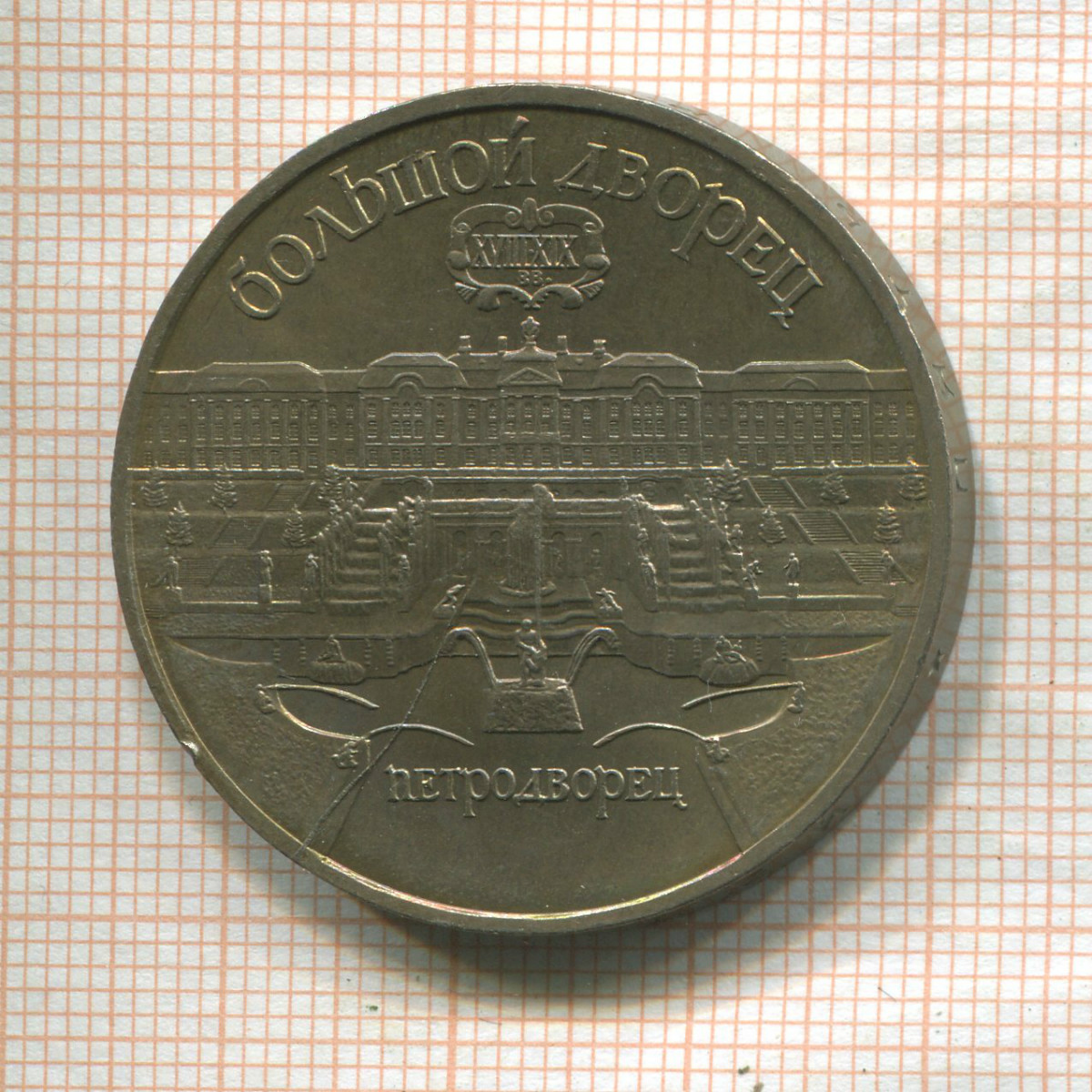 5 рублей. Большой дворец (брак - раскол штампа) 1990г