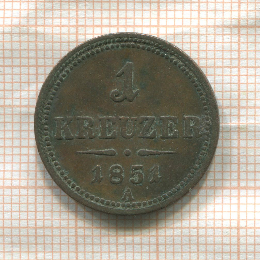 1 крейцер. Австрия 1851г