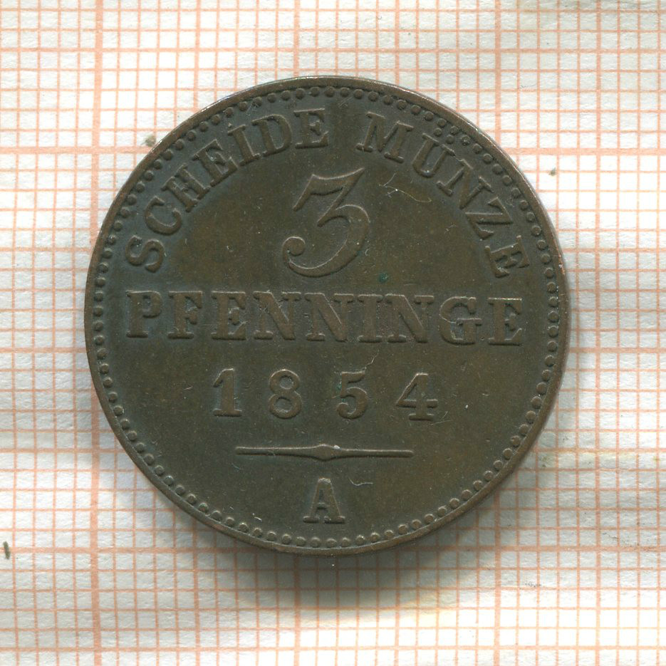 3 пфеннинга. Пруссия 1854г