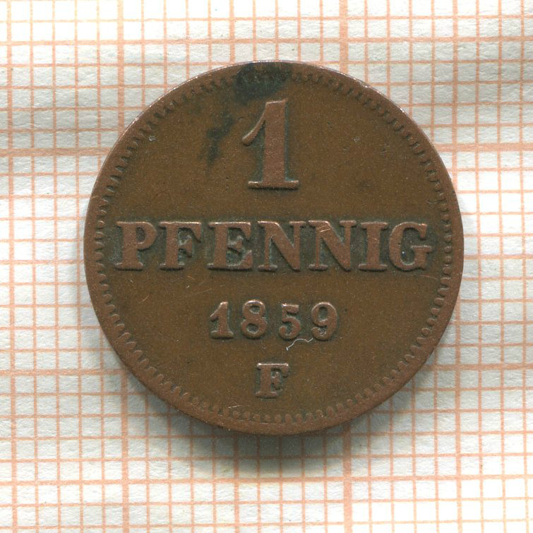 1 пфенниг. Саксония 1859г