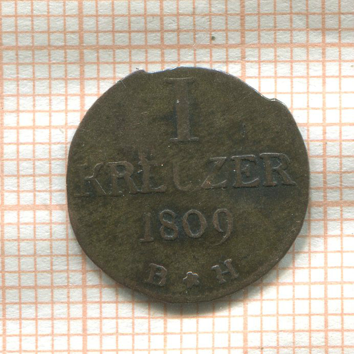 1 крейцер. Франкфурт. Княжество Карл Теодор фон Дальберг. (деформация) 1809г