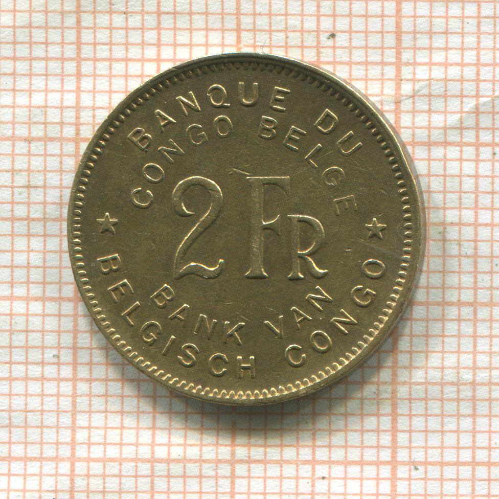 2 франка. Бельгийское Конго 1947г
