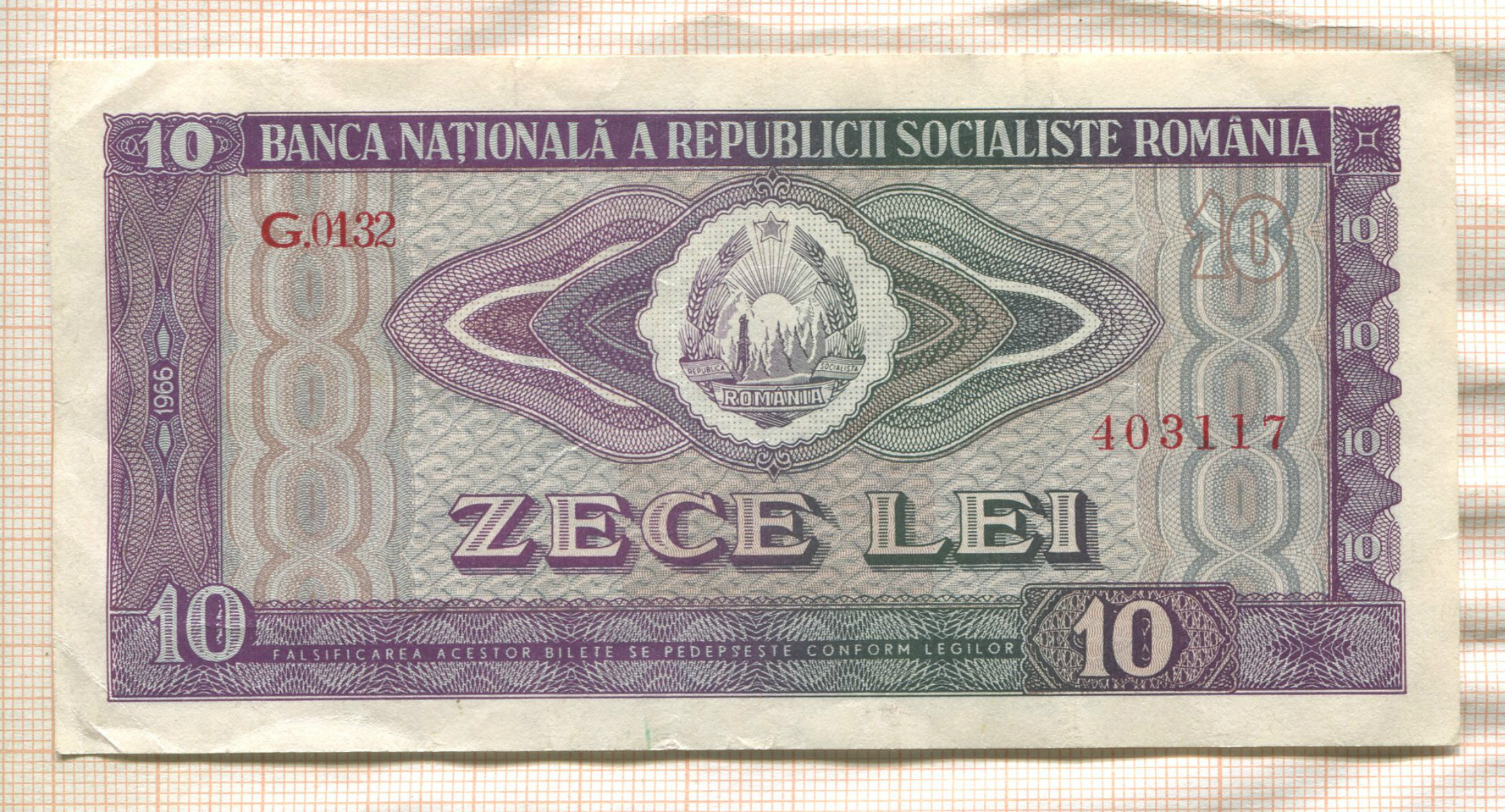 10 леев. Румыния 1966г