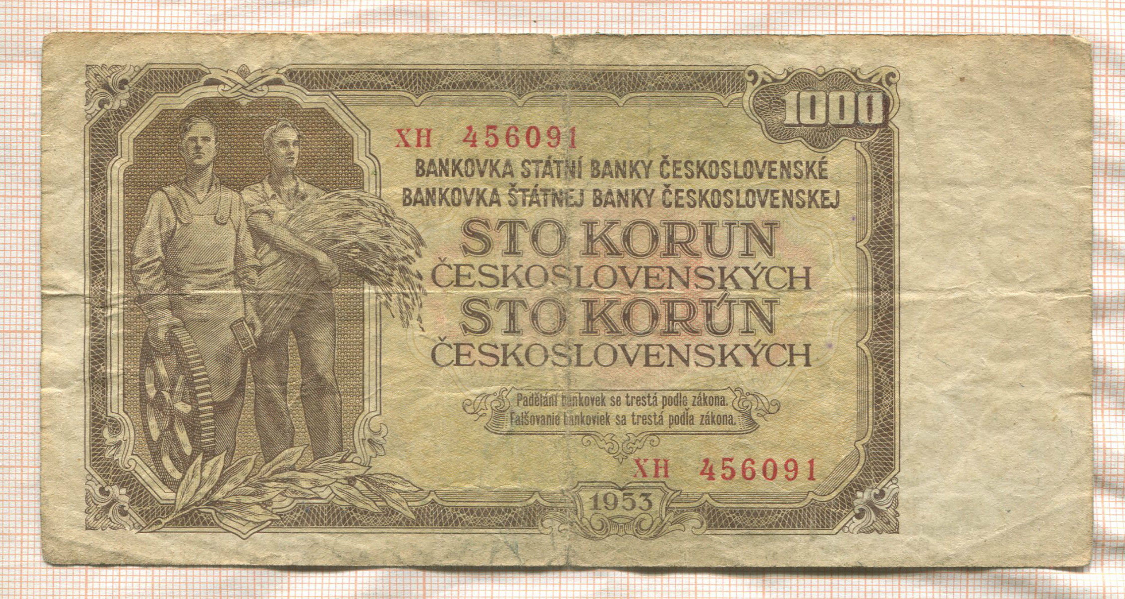 100 злотых. Польша (подделка, переделана в 1000 злотых) 1953г