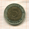 5 рублей. Красная книга. Рыбный филин 1991г