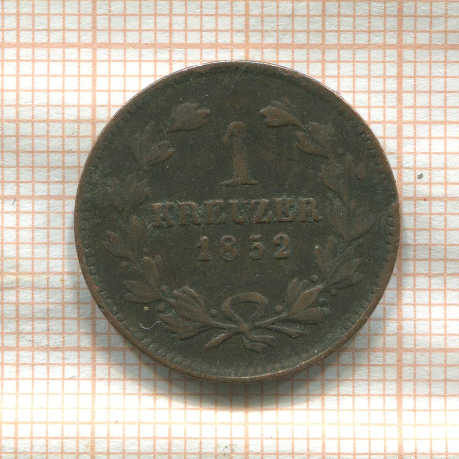 1 крейцер. Баден 1852г