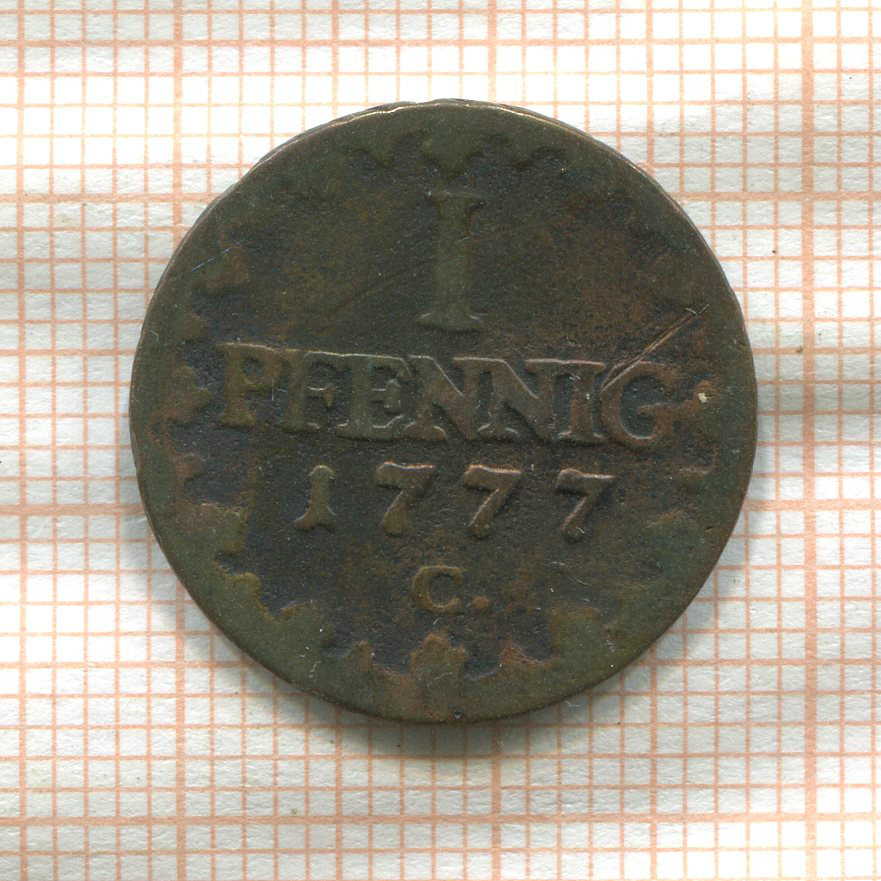 1 пфенниг. Саксония 1777г