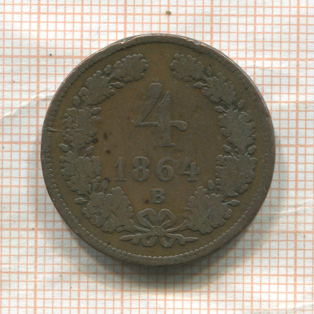 4 крейцера. Австрия 1864г
