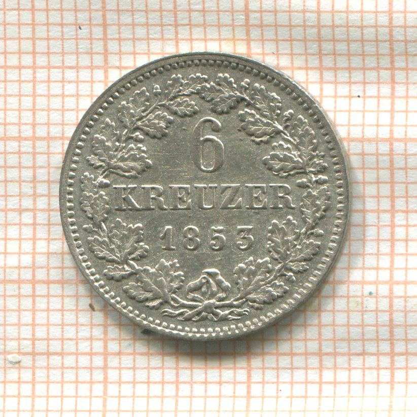 6 крейцеров. Бавария 1853г