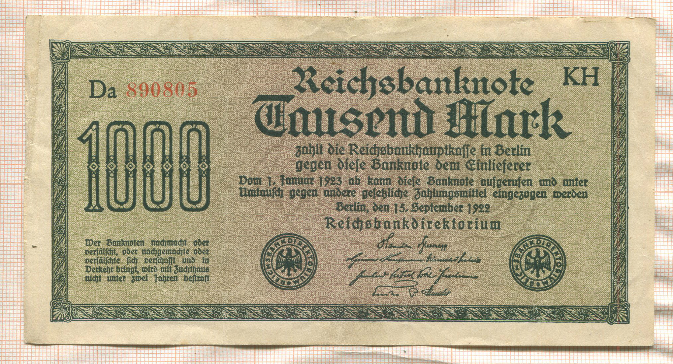 1000 марок. Германия 1922г