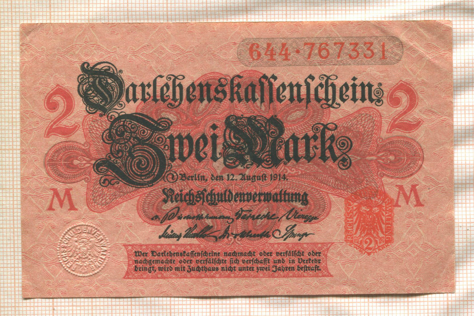 2 марки. Германия 1914г
