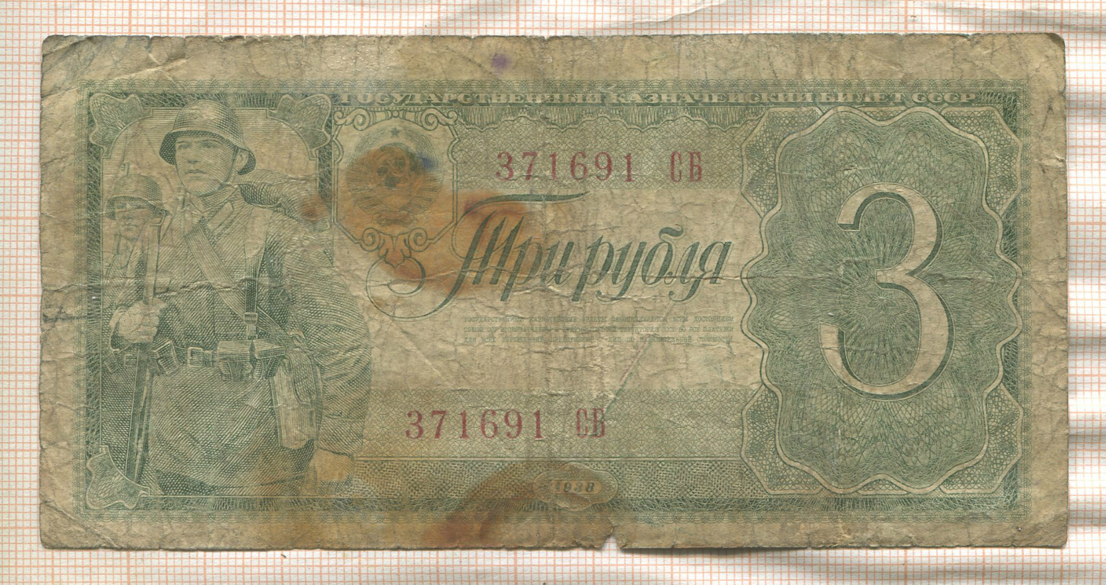3 рубля 1938г