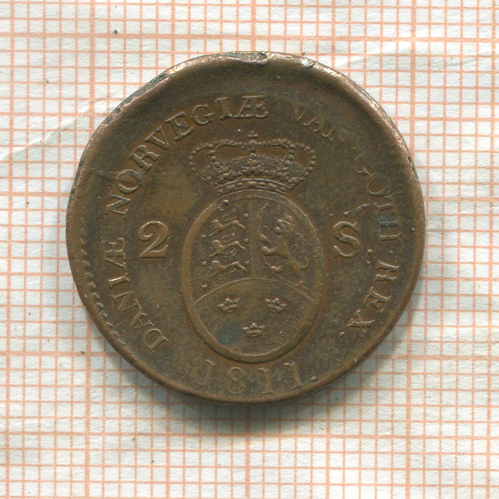 2 скиллинга. Дания (сдвиг штампа) 1811г