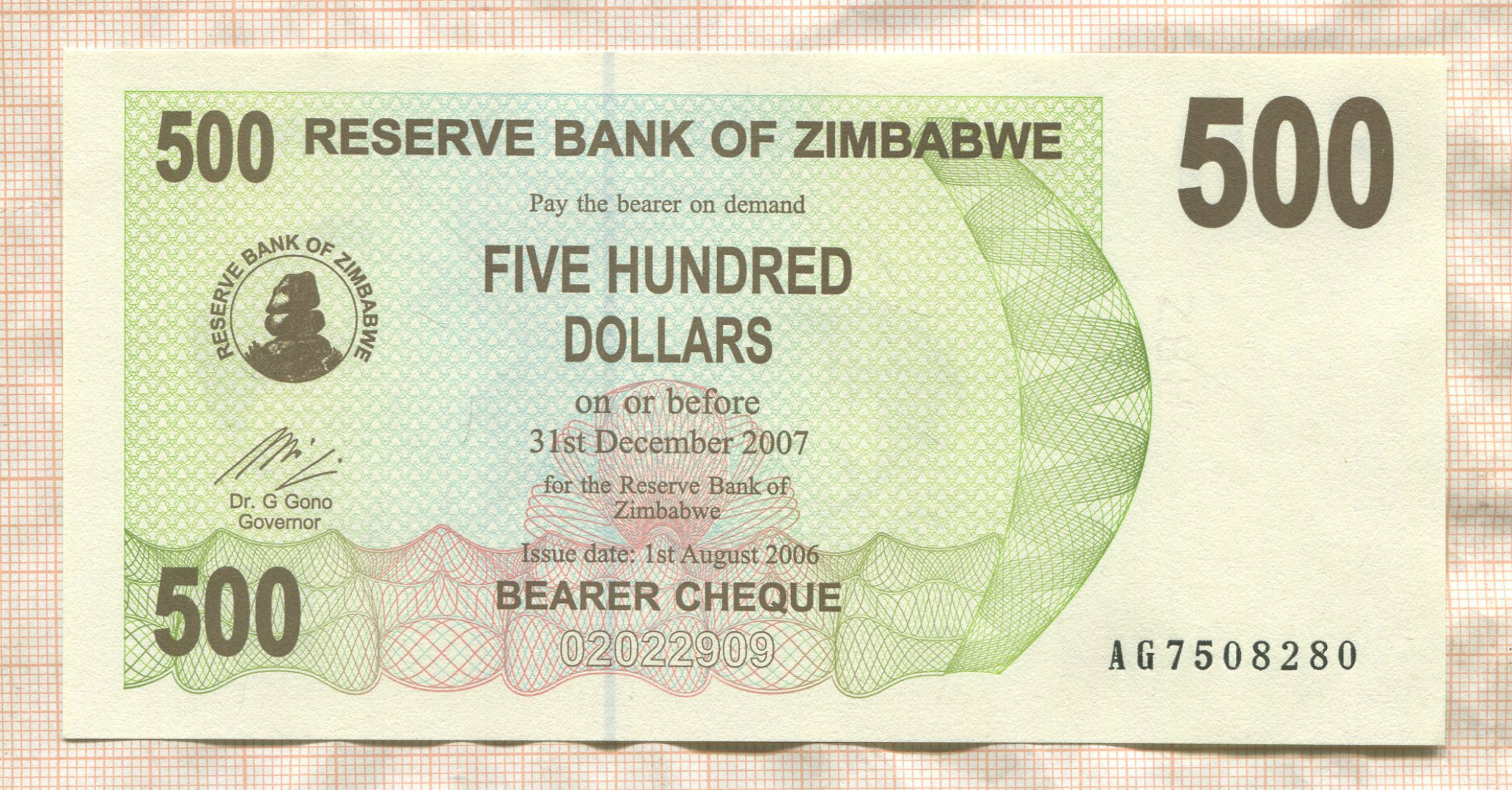 500 долларов. Зимбабве 2007г