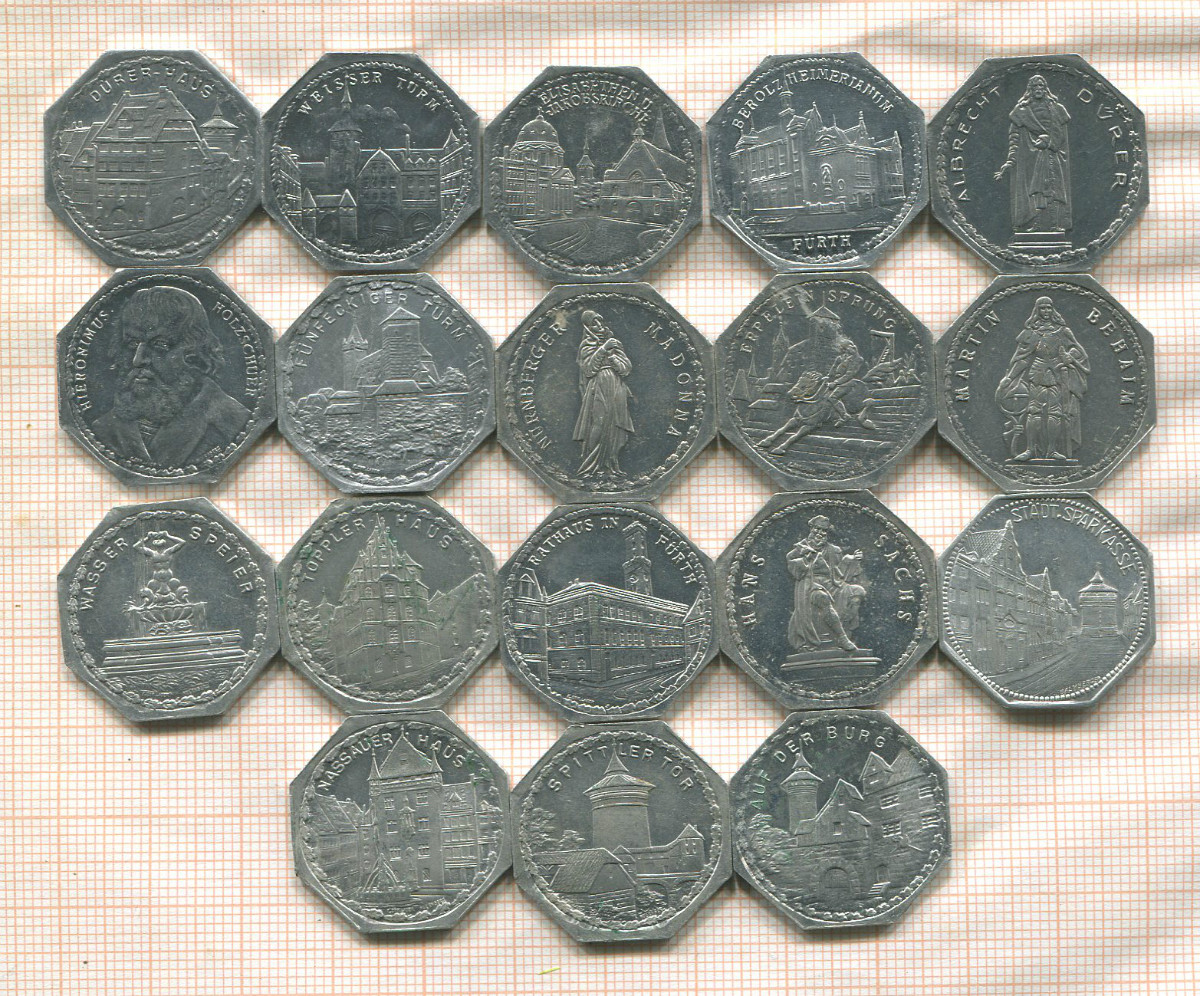 Нотгельд. 20 пфеннигов. Германия. Нюрнберг. 18 штук (все разные)