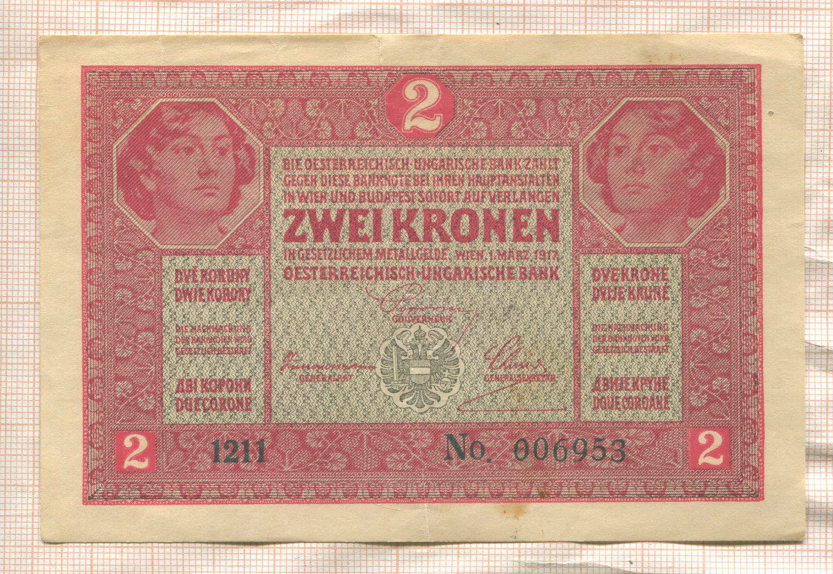2 кроны. Австро-Венгрия 1917г