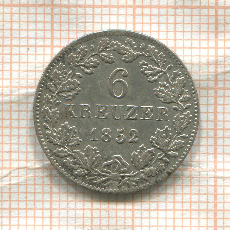 6 крейцеров. Вюртемберг 1852г
