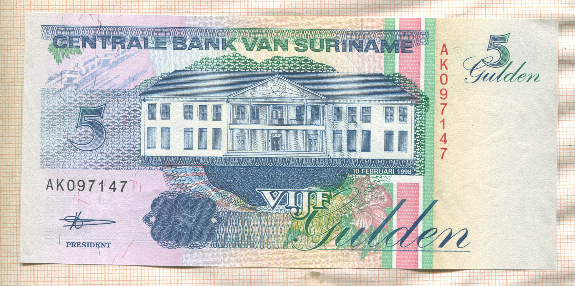 5 гульденов. Суринам