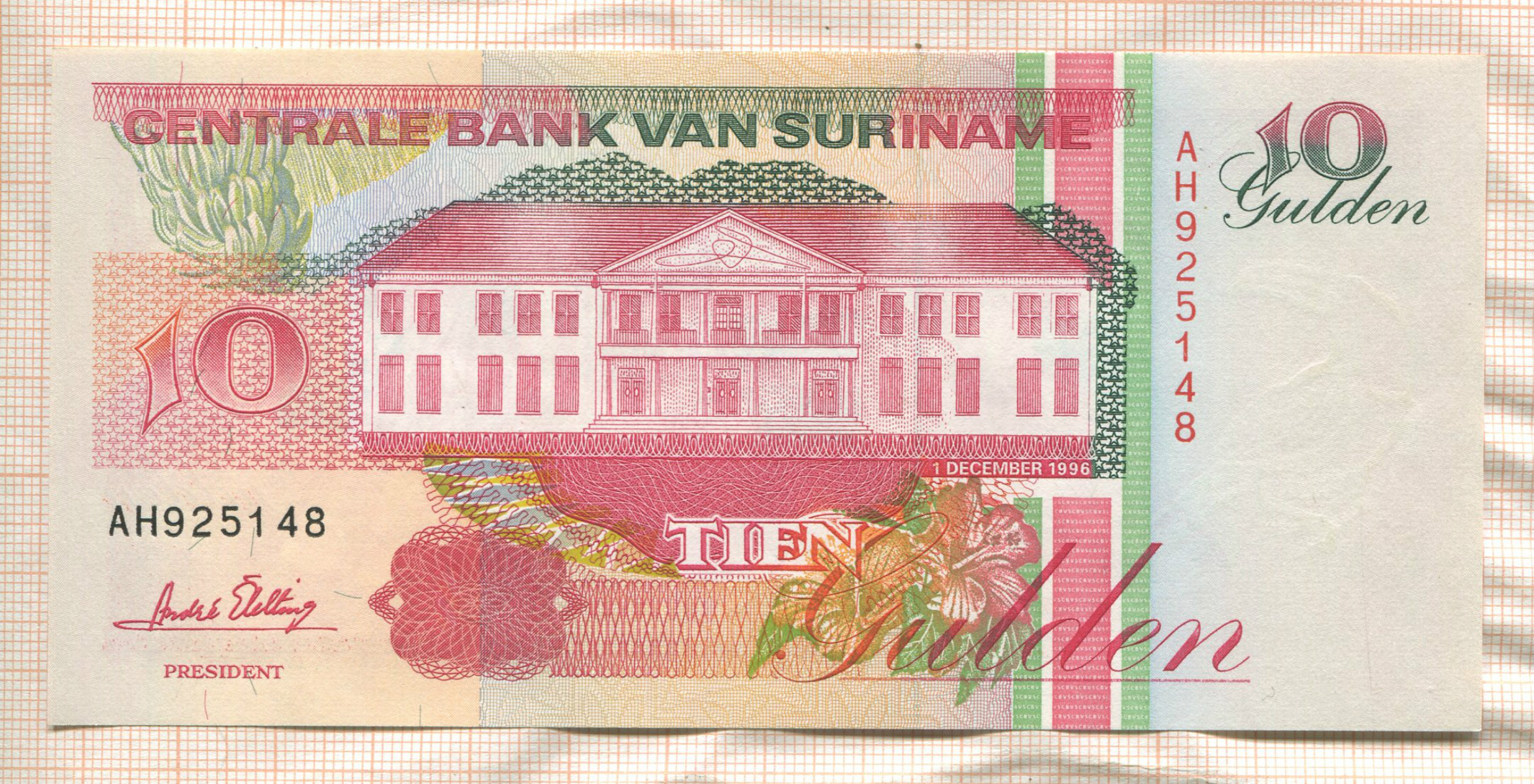 10 гульденов. Суринам