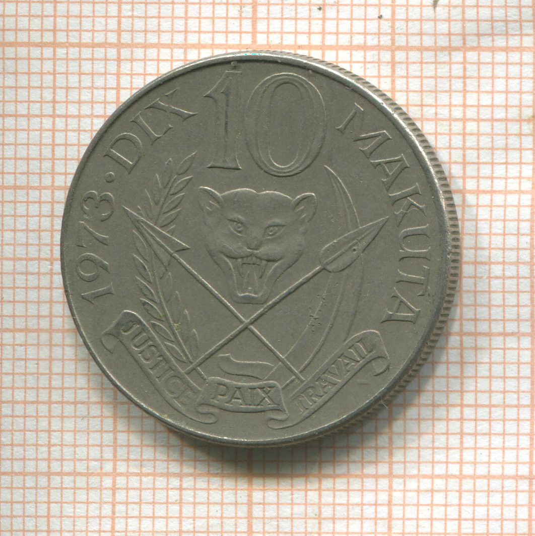 10 макута. Заир 1973г