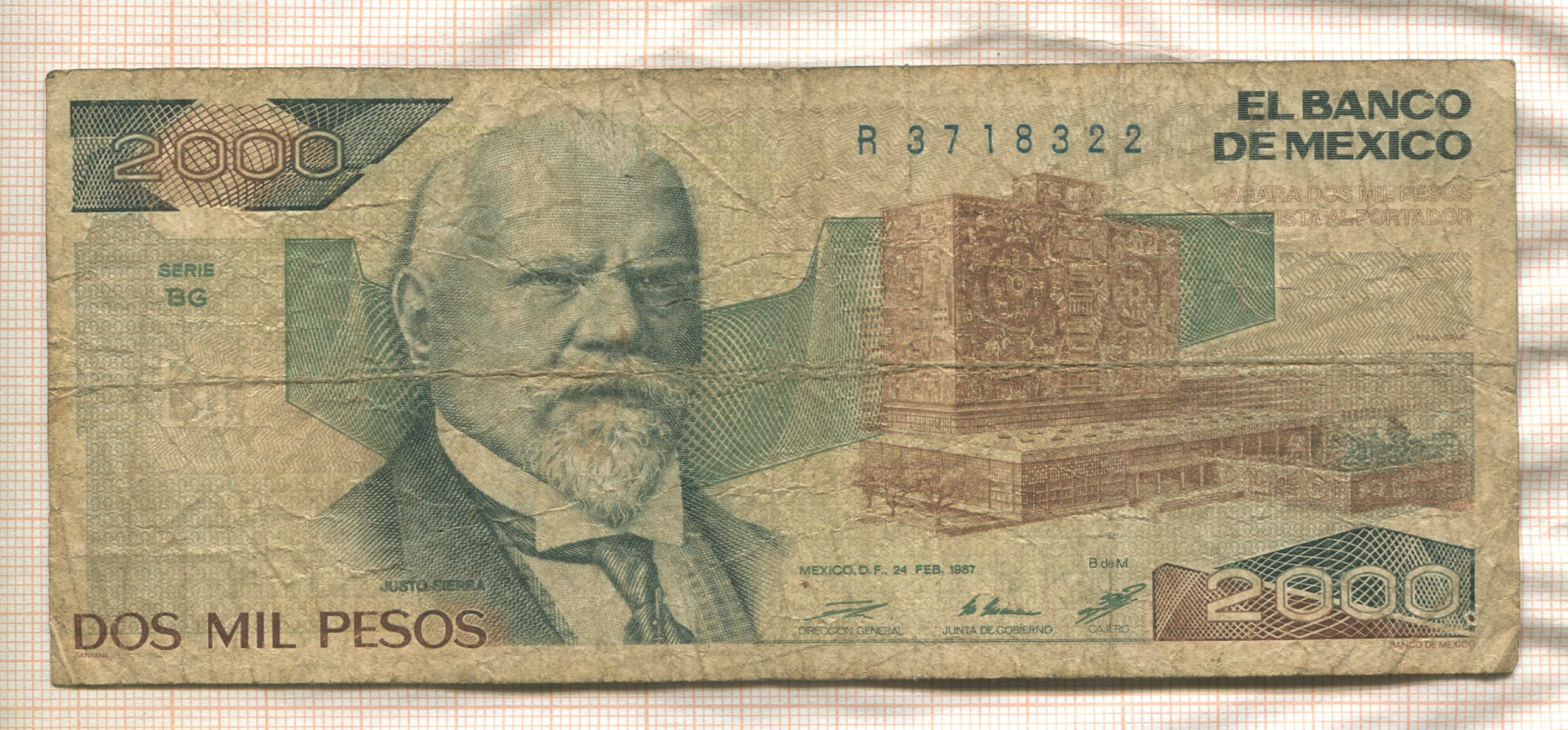 2000 песо. Мексика 1987г