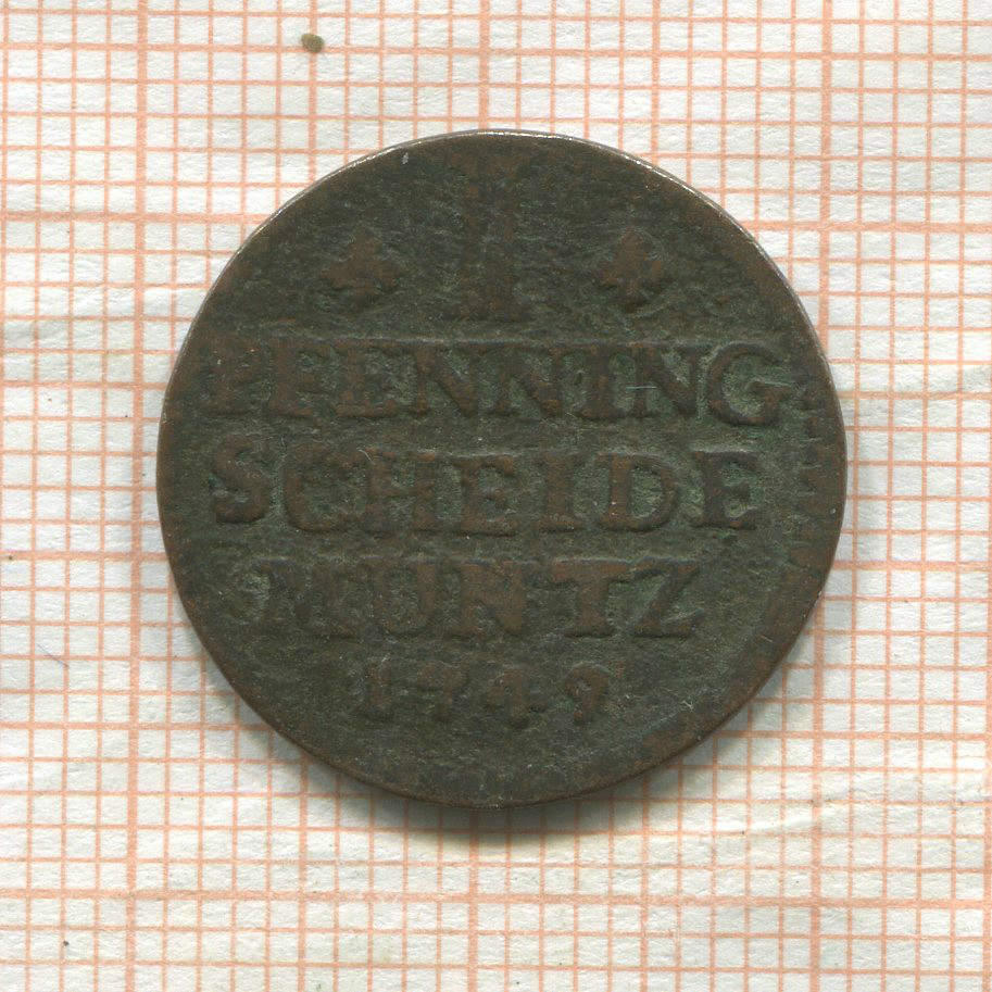 1 пфеннинг. Брауншвейг-Люнебург-Каленберг-Ганновер 1749г