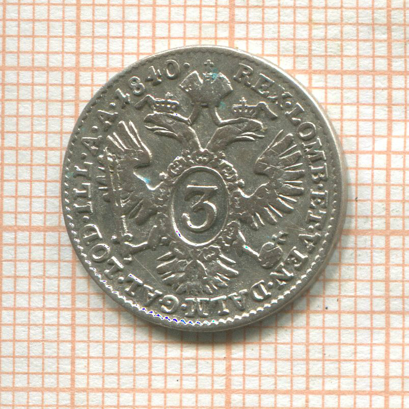 3 крейцера. Австрия 1840г