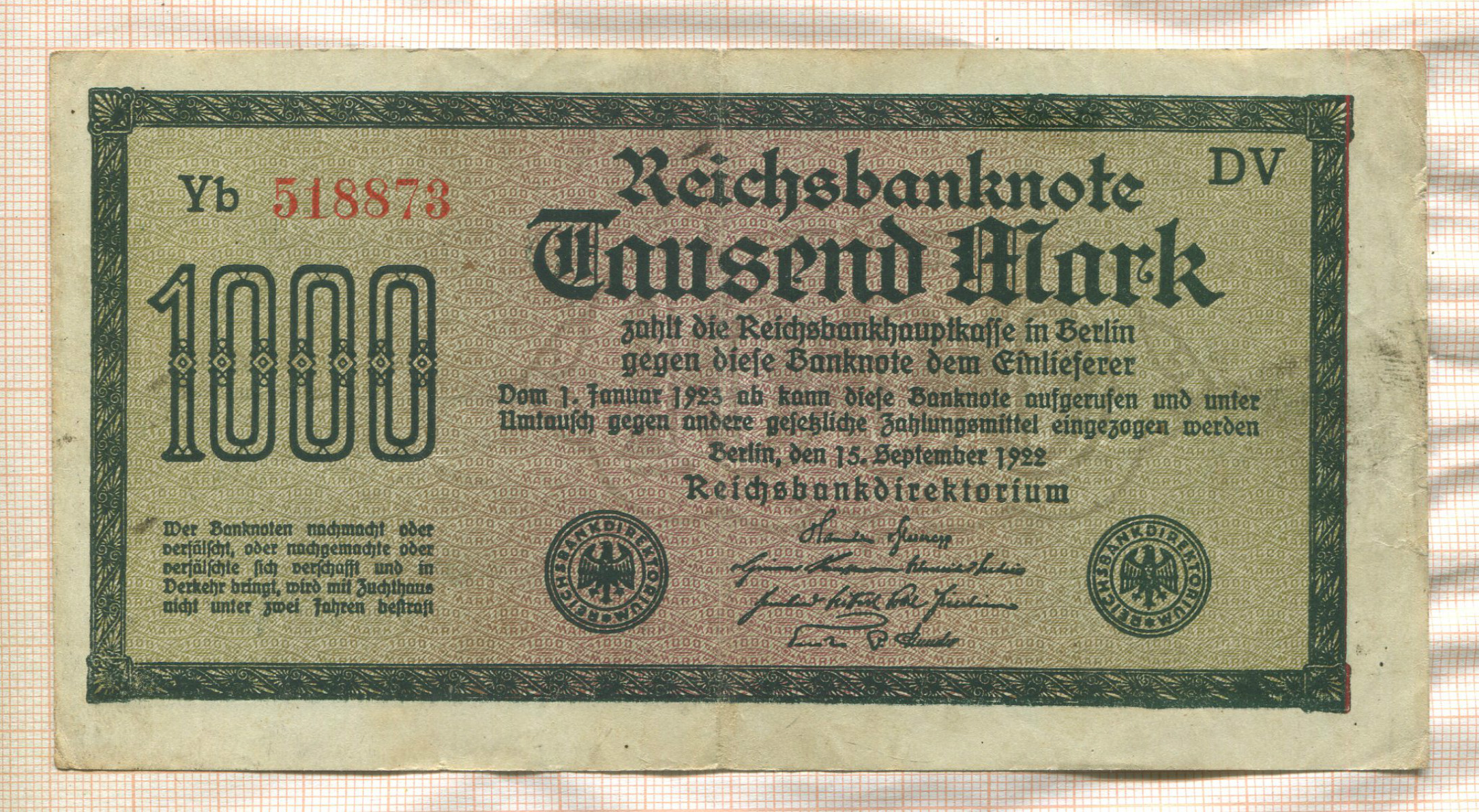 1000 марок. Германия 1922г