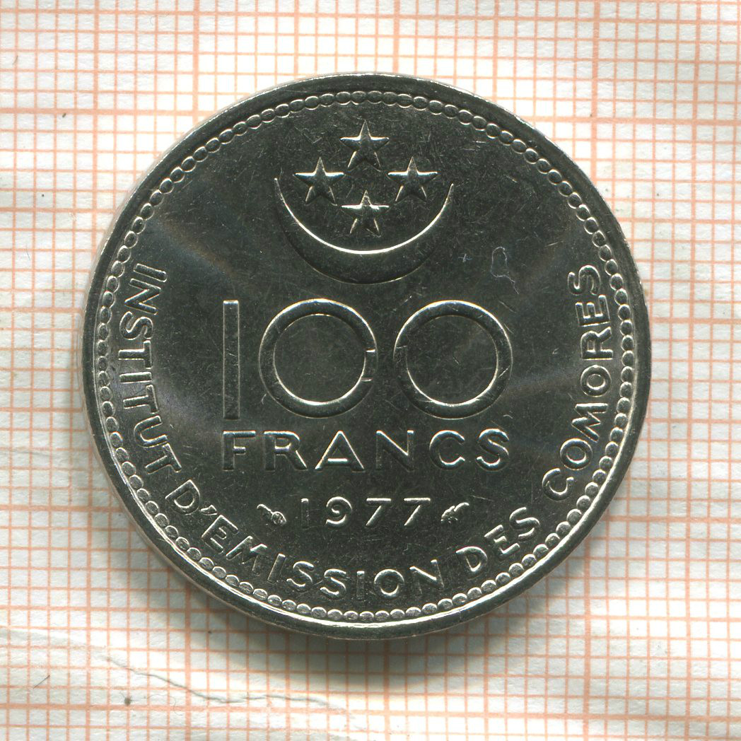 100 франков. Коморские острова. F.A.O. 1977г