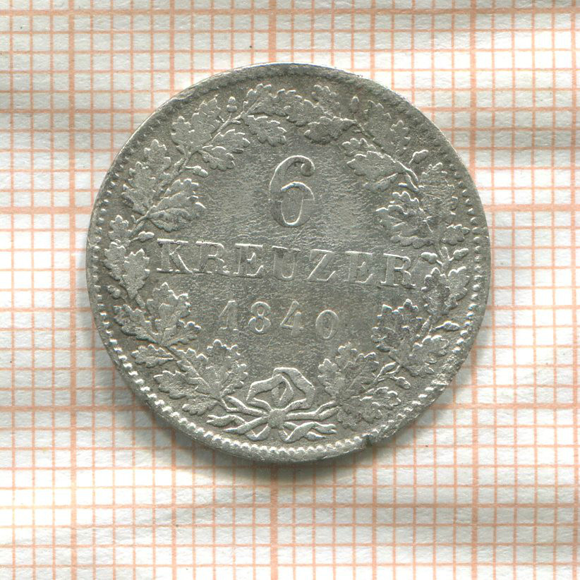 6 крейцеров. Баден 1840г