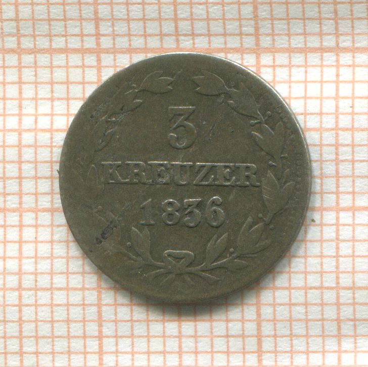 3 крейцера. Нассау 1836г