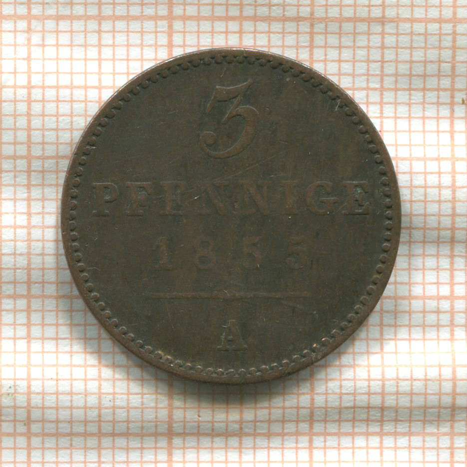 3 пфеннига. Вальдек-Пирмонт 1855г