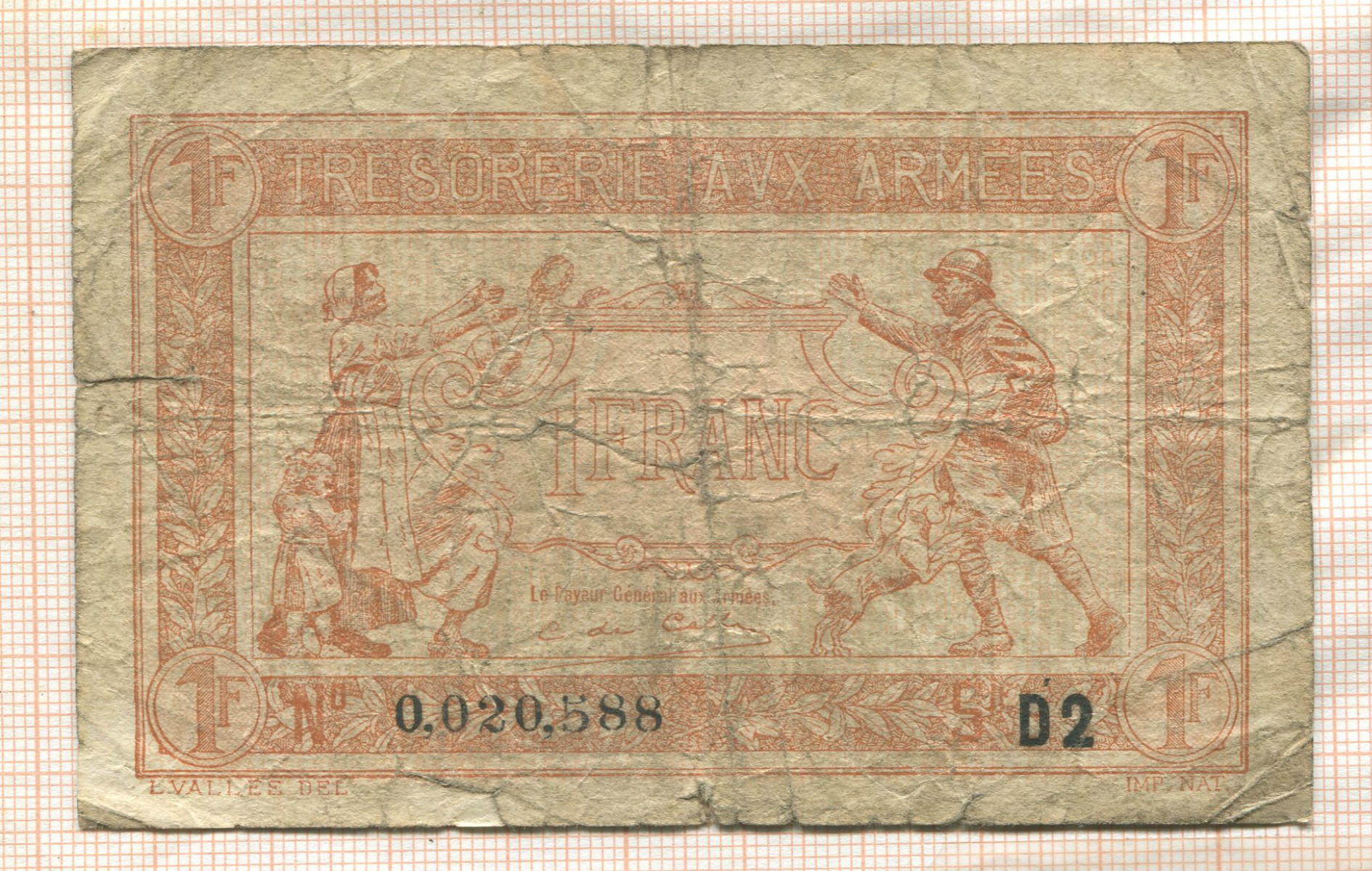 1 франк. Франция. Выпуск для военного казначейства. Первая Мировая война.