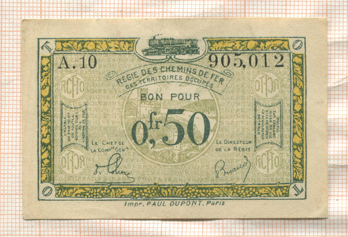 0,50 франка. Французский выпуск для оккупированных территорий Рейнланда.