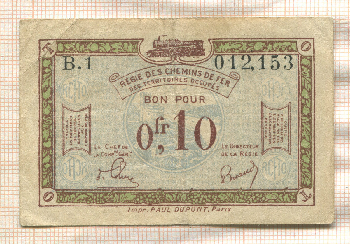 0,10 франка. Французский выпуск для оккупированных территорий Рейнланда.