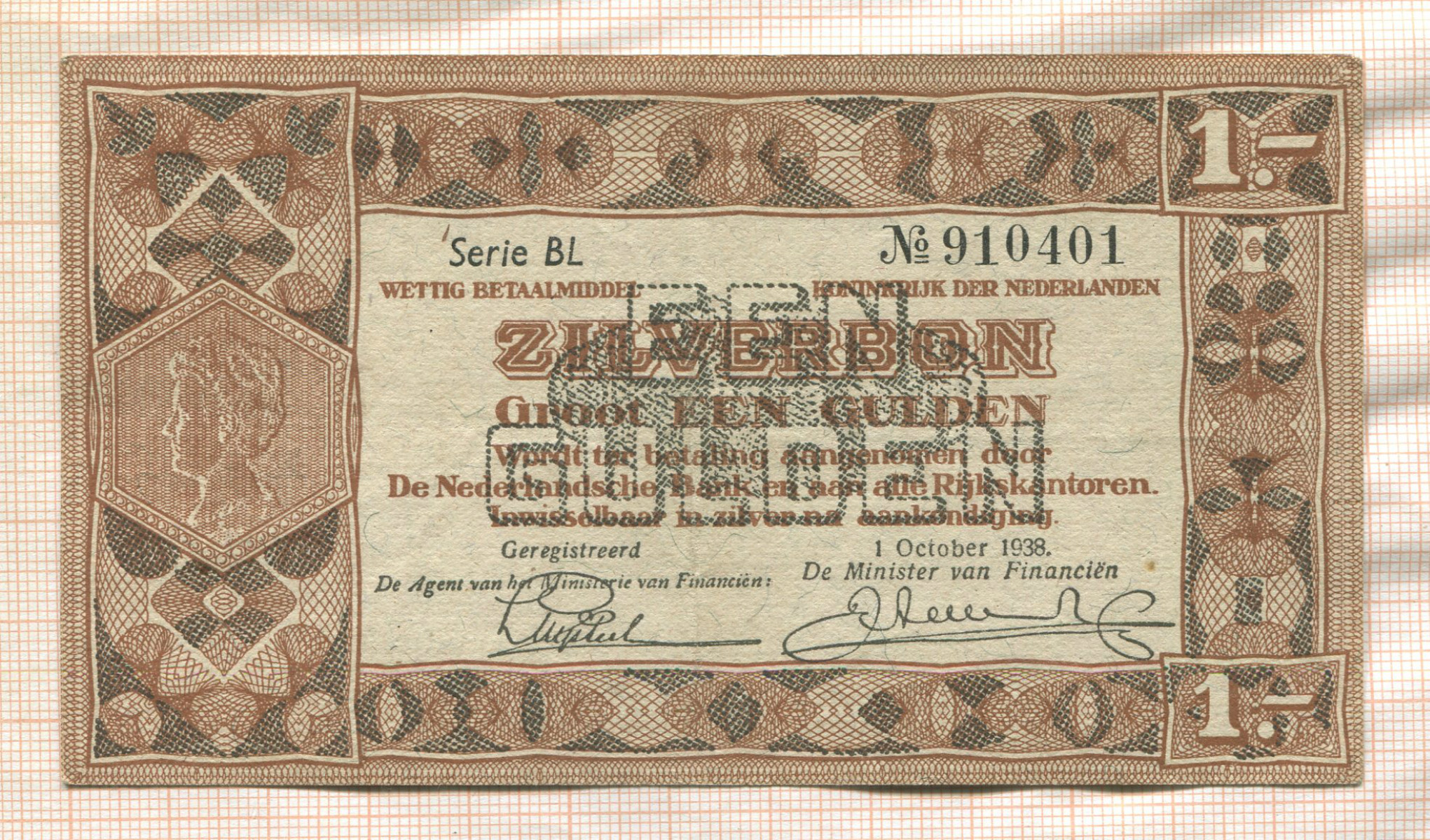1 гульден. Нидерланды 1938г